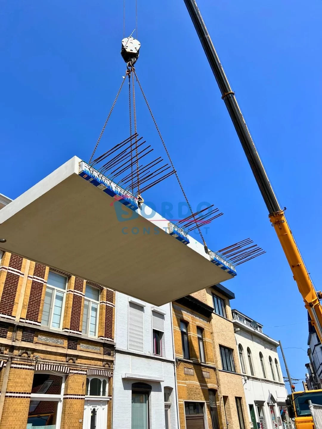 In Deurne hebben wij opnieuw een technisch uitdagend project tot een succesvol einde gebracht. Het bestaande gebouw hebben wij volledig afgebroken om plaats te maken voor een nieuwe en duurzame constructie. De werf was bijzonder moeilijk bereikbaar, waardoor een kraan niet rechtstreeks in de tuin kon geplaatst worden. Dankzij onze 20 jaar ervaring, technische kennis en oplossingsgericht denken hebben wij dit probleem efficiënt opgelost: via een tweede kraan hebben wij de hoofdkraan veilig en precies naar de achterzijde van het terrein verplaatst. Een manoeuvre dat enkel mogelijk is met een team dat beschikt over écht vakmanschap.