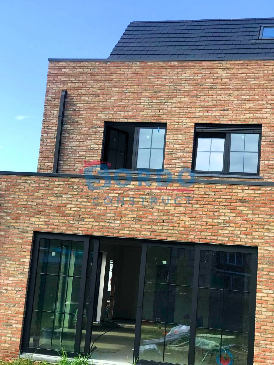 We begonnen met de nodige grondwerken en funderingswerken, die de basis vormen voor een sterke en betrouwbare constructie. Vervolgens realiseerden wij het binnenmetselwerk, zorgvuldig uitgevoerd om de draagstructuur van de woning correct op te bouwen.